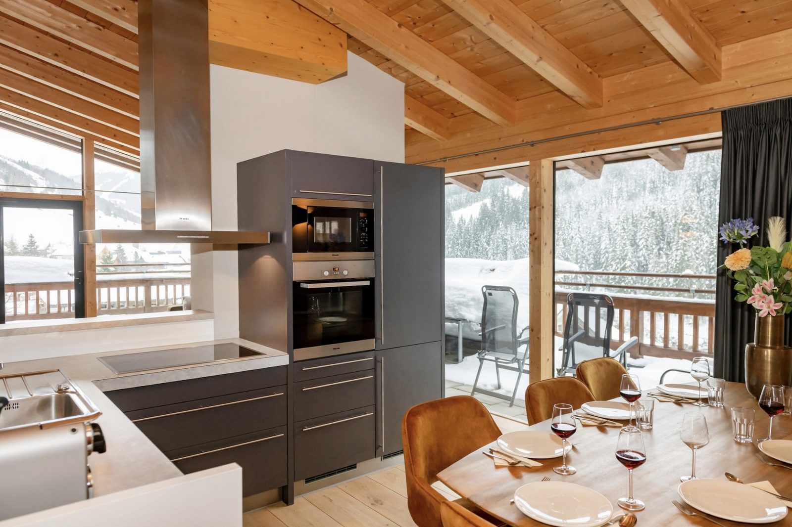 Kaprun Glacier Estate bietet 8 luxuriöse Apartments und 3 großzügige Penthäuser für 4 bis 14 Gäste. Jede Unterkunft ist auf maximalen Komfort ausgelegt und verfügt über Tieleman-Designerküchen, stilvolle Badezimmer und gemütliche Wohnbereiche. Die Gäste können nach einem Tag auf den Pisten oder bei Outdoor-Aktivitäten in den Bergen in der gemeinsamen Sauna entspannen, während die zentrale Lage direkten Zugang zur Maiskogelbahn, zu nahegelegenen Wander- und Skipisten, zur Tauern Spa und zum beeindruckenden Zeller See bietet, das ganze Jahr über.