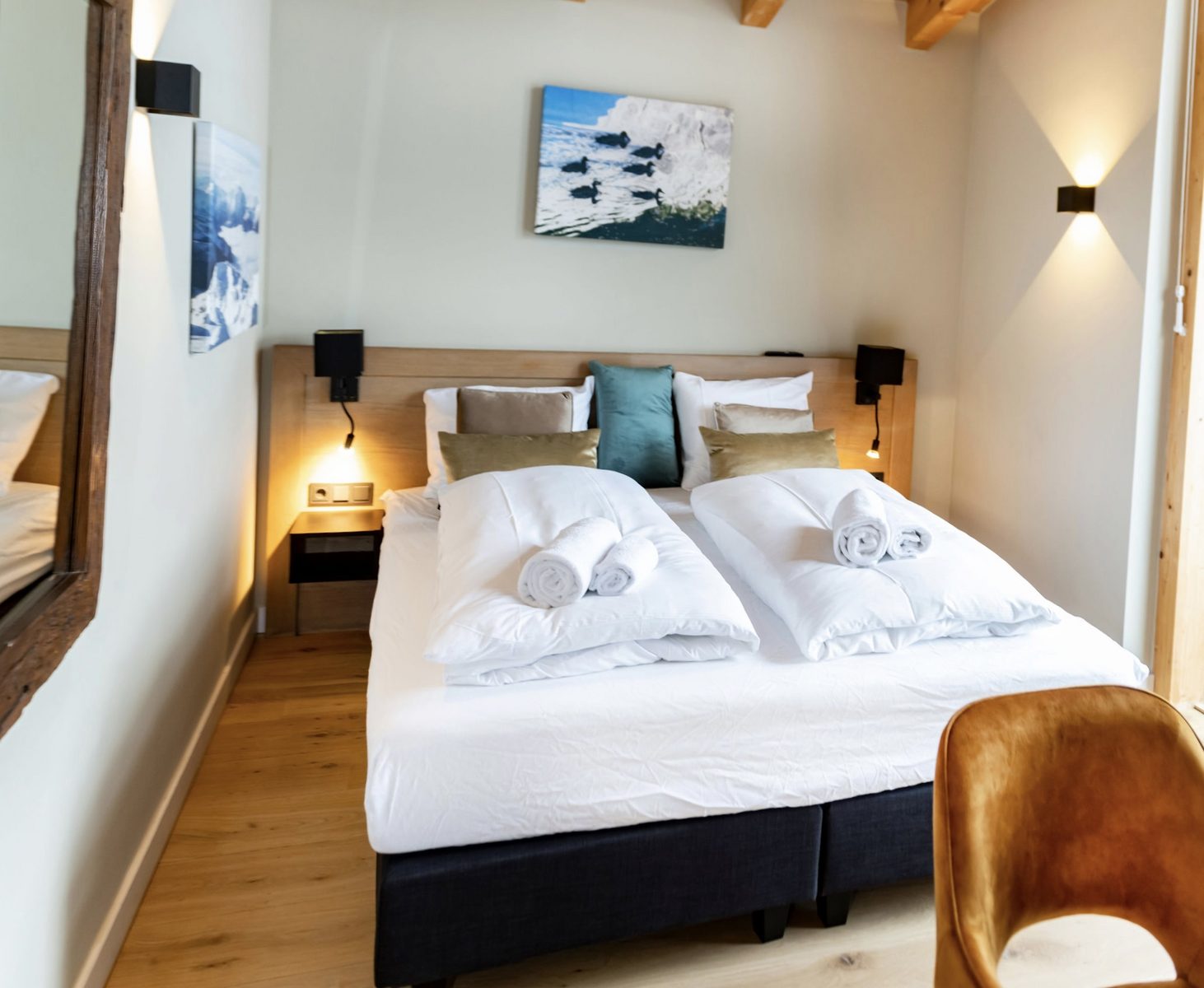Das Hotel verfügt über moderne Zimmer und luxuriöse Suiten mit Kingsize-Betten, Smart-TVs, Nespresso-Maschinen und geräumigen Badezimmern mit Walk-In-Dusche. Gäste können ihre Ski- oder Fahrradausrüstung sicher im dafür vorgesehenen Abstellraum aufbewahren und die zentrale Lage für Winterpisten sowie Sommeraktivitäten in den Bergen genießen. Das Hotel ist Adults-Only (15+).